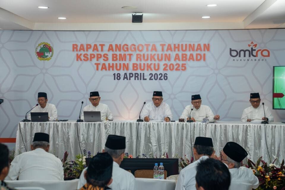 Tangerang (20/4). Koperasi Simpan Pinjam dan Pembiayaan Syariah (KSPPS) BMT Rukun Abadi menggelar Rapat Anggota Tahunan (RAT) Tahun Buku 2025. Acara yang digelar secara hybrid di GSG Nurul Aini, Tangerang, pada Sabtu (18/4/2026) itu dihadiri anggota secara daring mencapai 23.812 orang atau 65,11 persen dari total anggota.
