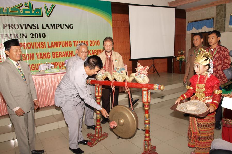 Pemukulan gong sebagai tanda pembukaan secara resmi Musda DPD LDII Provinsi Lampung oleh Sekretaris Pemerintah Provinsi yang mewakili Gubernur Provinsi Lampung