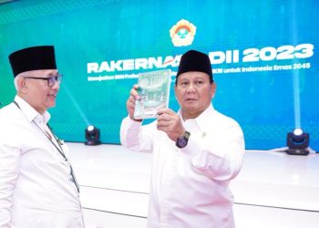 Jakarta (8/11). Menteri Pertahanan (Menhan) Prabowo Subianto memberikan pembekalan di rakernas LDII, Jakarta Timur, Selasa (7/11/2023). Dalam pembekalannya, ia menuturkan ...